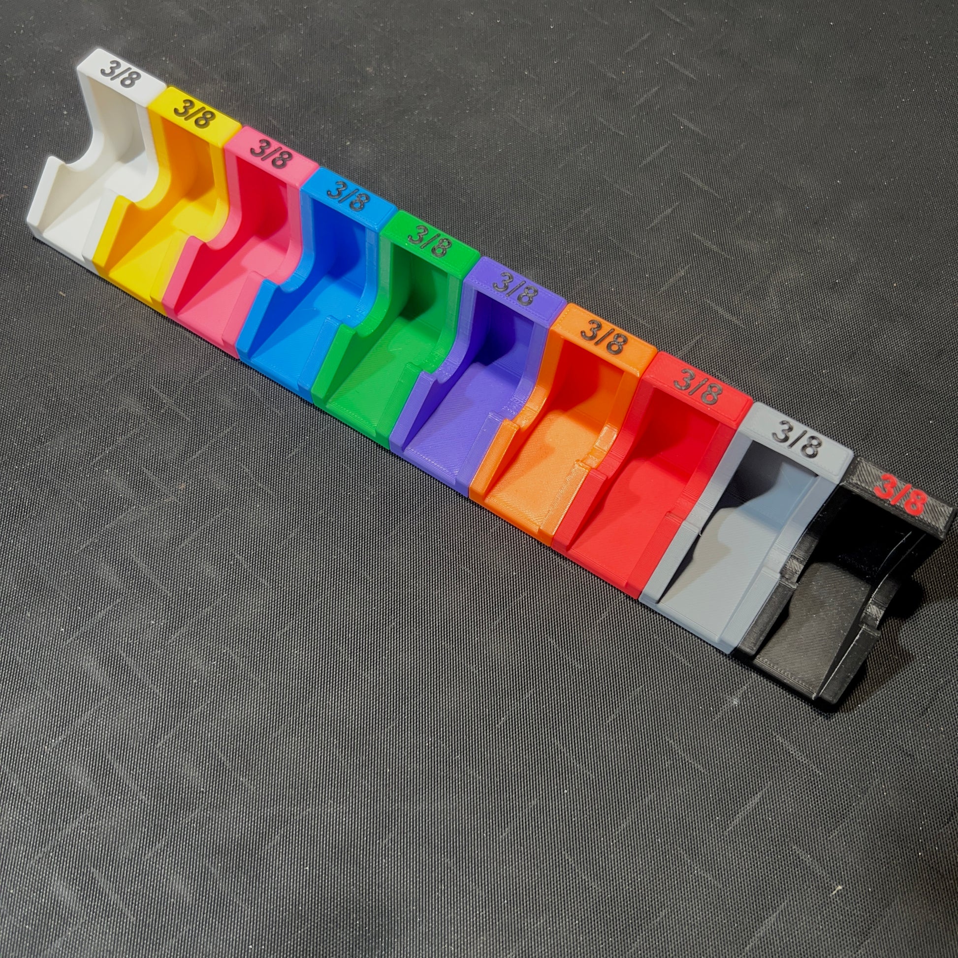 Made to hold your 3/8" ratchets securely and neatly, this organiser helps you eliminate drawer clutter and find the right tool fast. Made from durable PLA and fitted with strong magnets on the base, it stays firmly planted in your toolbox or drawer, it's a simple but effective solution for any professional or DIY setup.